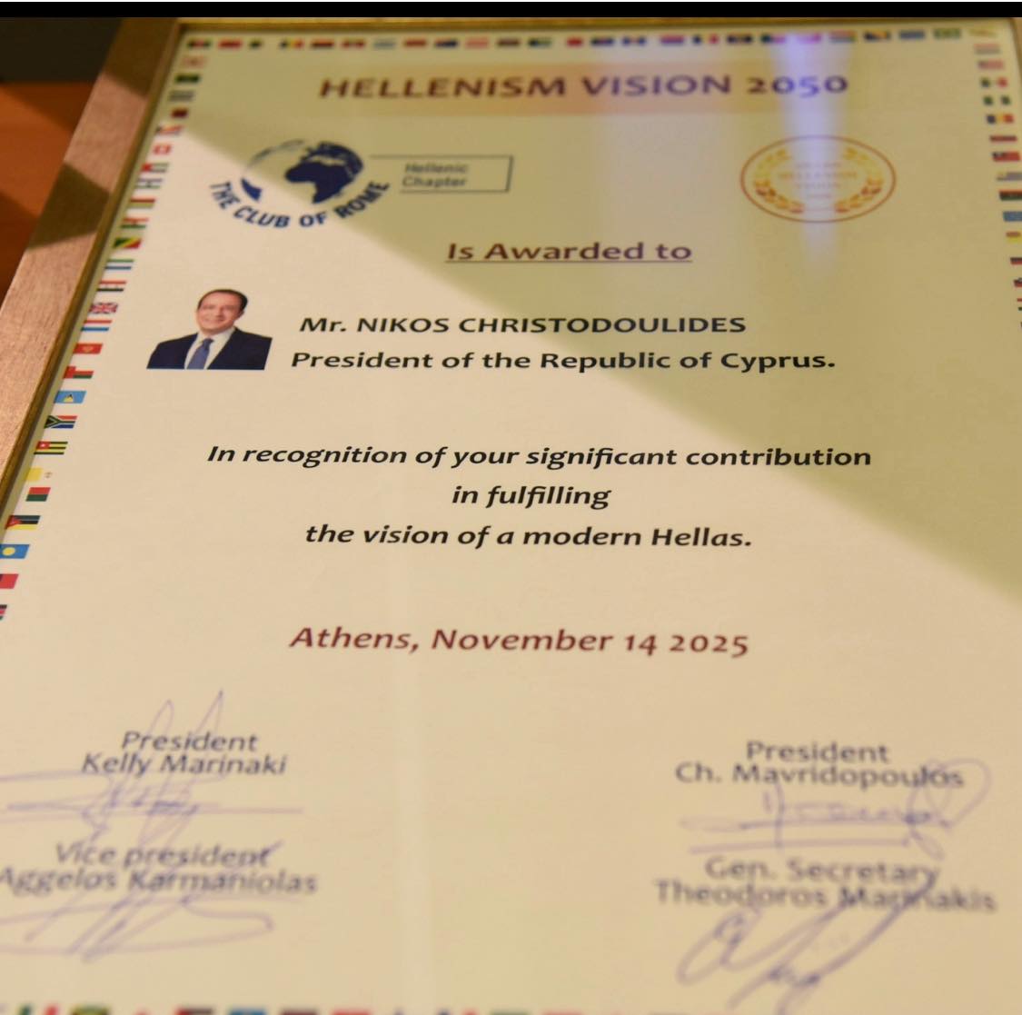 - Στον Πρόεδρο της Κυπριακής Δημοκρατίας κ. Νίκο Χριστοδουλίδη, για την πανελλήνια & διεθνή του συμβολή (Το βραβείο παρέλαβε ο Πρέσβης της Κυπριακής Δημοκρατίας στην Ελλάδα κ. Σταύρος Αυγουστίδης),