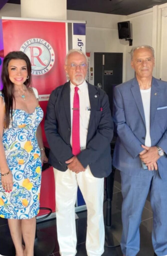 Σε μια όμορφη εκδήλωση για τον εορτασμό της Ημέρας Ανεξαρτησίας των ΗΠΑ, όπου το Ελληνικό Παράρτημα της Λέσχης της Ρώμης εκπροσωπήθηκε από την συν-Πρόεδρο κα Κέλλυ Μαρινάκη και τον Αντιπρόεδρος κο Αγγελο Καρμανιόλα, είχαμε την ευκαιρία να συνομιλήσουμε με την Αντιπρόεδρο του Ελληνικού Παραρτήματος του Ρεπουμπλικανικού κόμματος κα Βίλμα Παπαγεωργίου και τον Πρόεδρο κ. Jonathan Constantine.